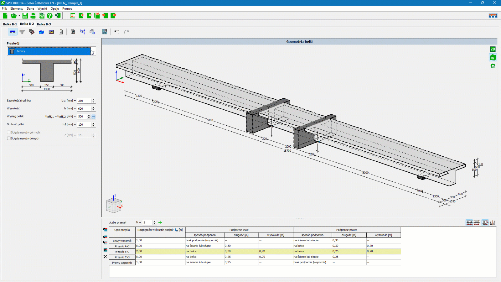 Program służy do obliczeń żelbetowych belek wieloprzęsłowych według Eurokodu żelbetowego - normy EN 1992-1-1. Program składa się z następujących modułów: